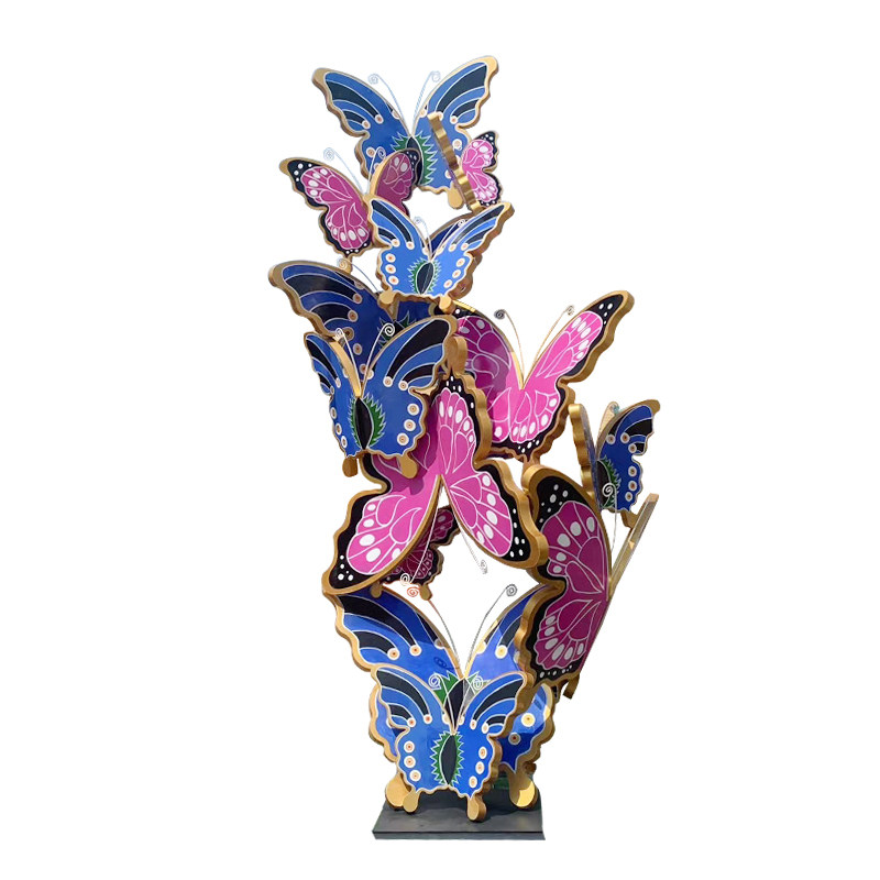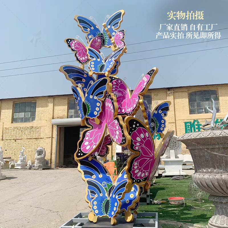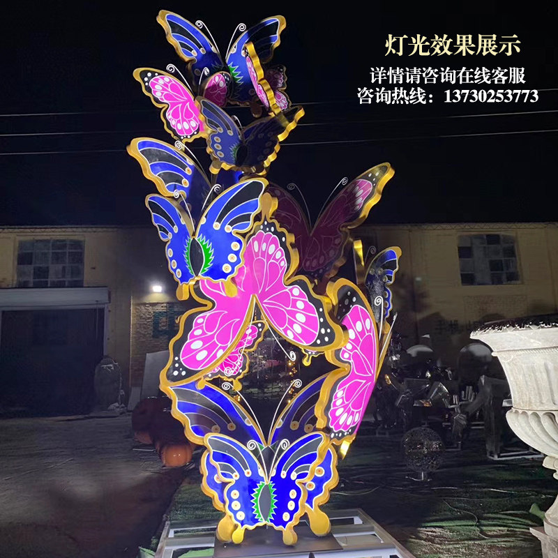 Stainless steel butterfly iron hollow glowing sculpture large outdoor park forest landscape sketch city square ornaments
