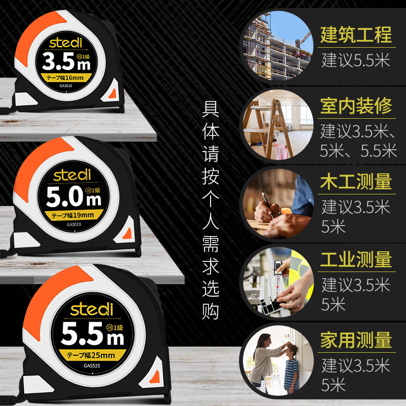 STELLI Stainless steel thickened steel tape measure Household box ruler 3 5 m 5 m 5 5 m High precision measuring tool