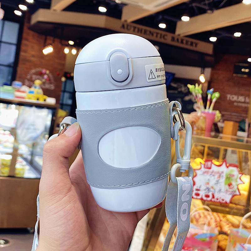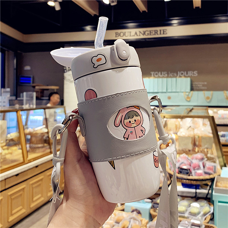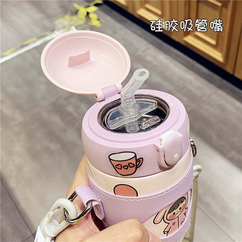 Cute children's thermal cup girl with straw cup with cup slant cup cup and small chocolate kettle out