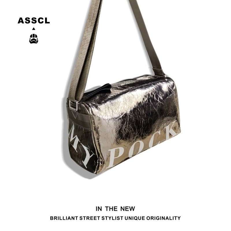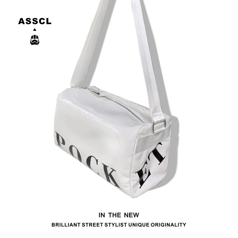 One-shoulder messenger bag men's trendy brand large capacity ins fitness bag cowhide street hip-hop alphabet waist bag barrel bag women