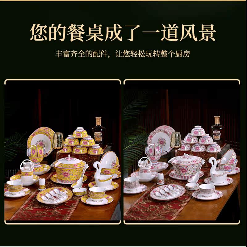 Jingdezhen ceramic dishes set enamel color bone porcelain tableware Chinese style high-grade household bowl combination housewarming gifts