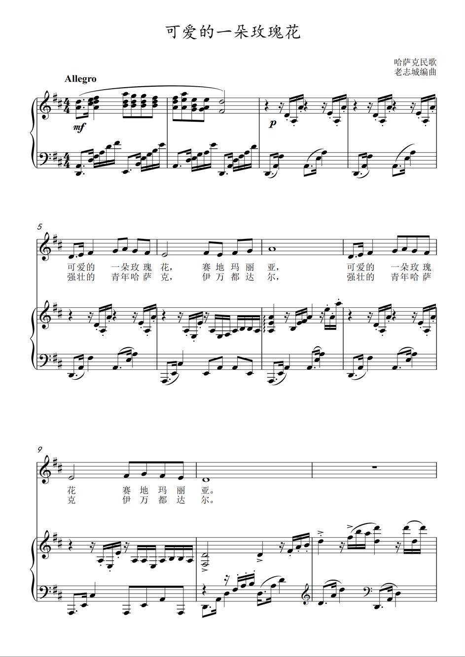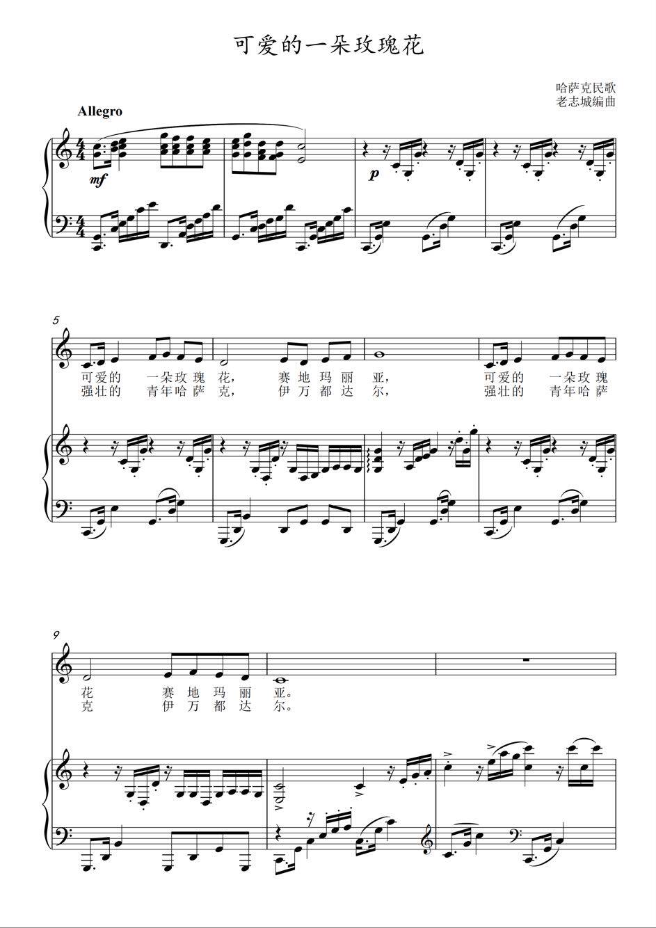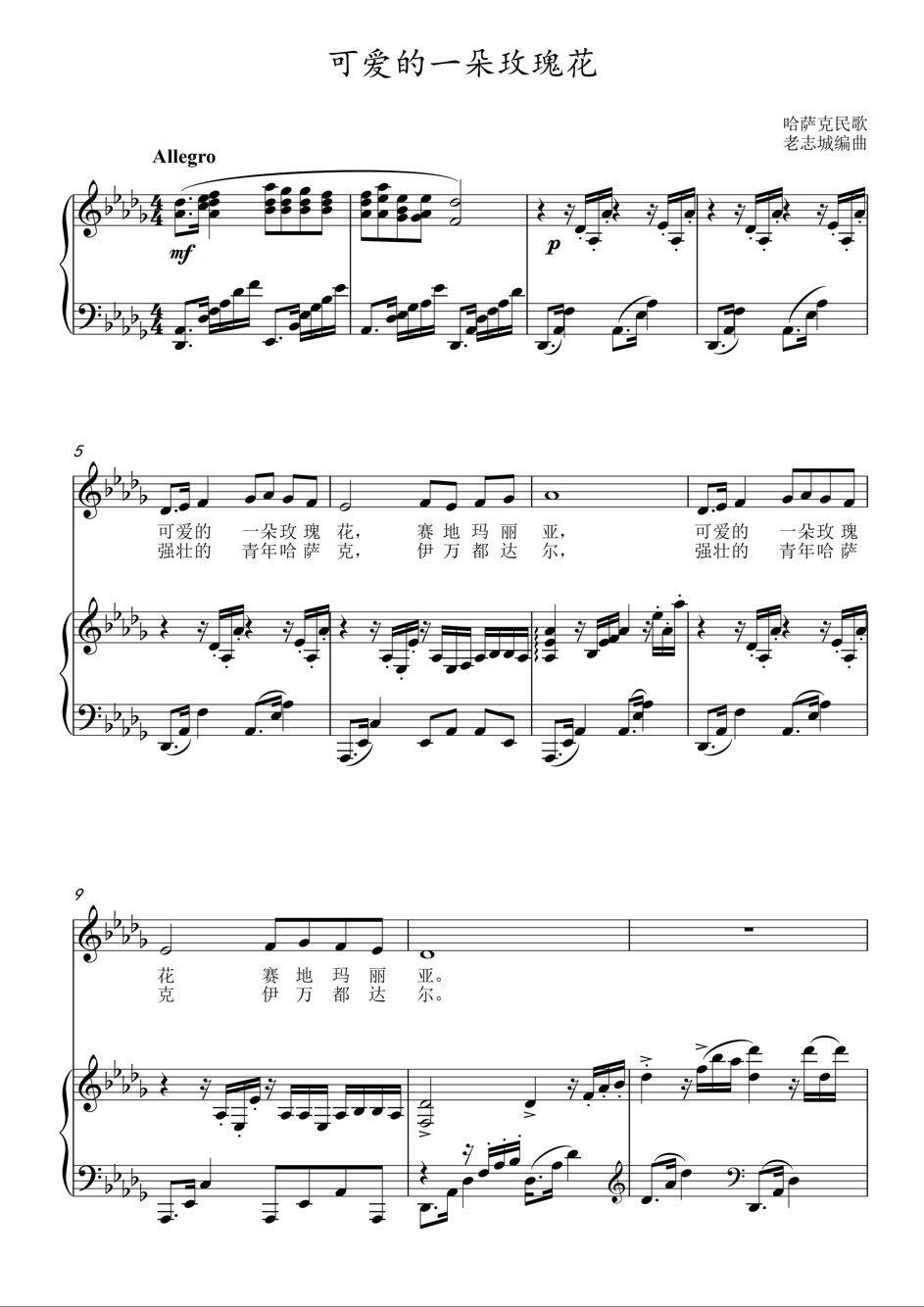 A lovely rose E flat E flat D flat D flat C B key vocal piano accompaniment staff positive notation