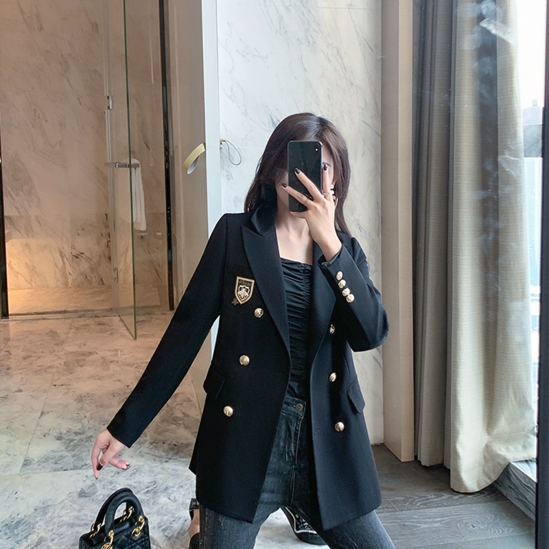 Small suit jacket female thin section Inn Wind Spring autumn long sleeves Leisure 100 lap double and buckle Little western clothes design feeling small crowd