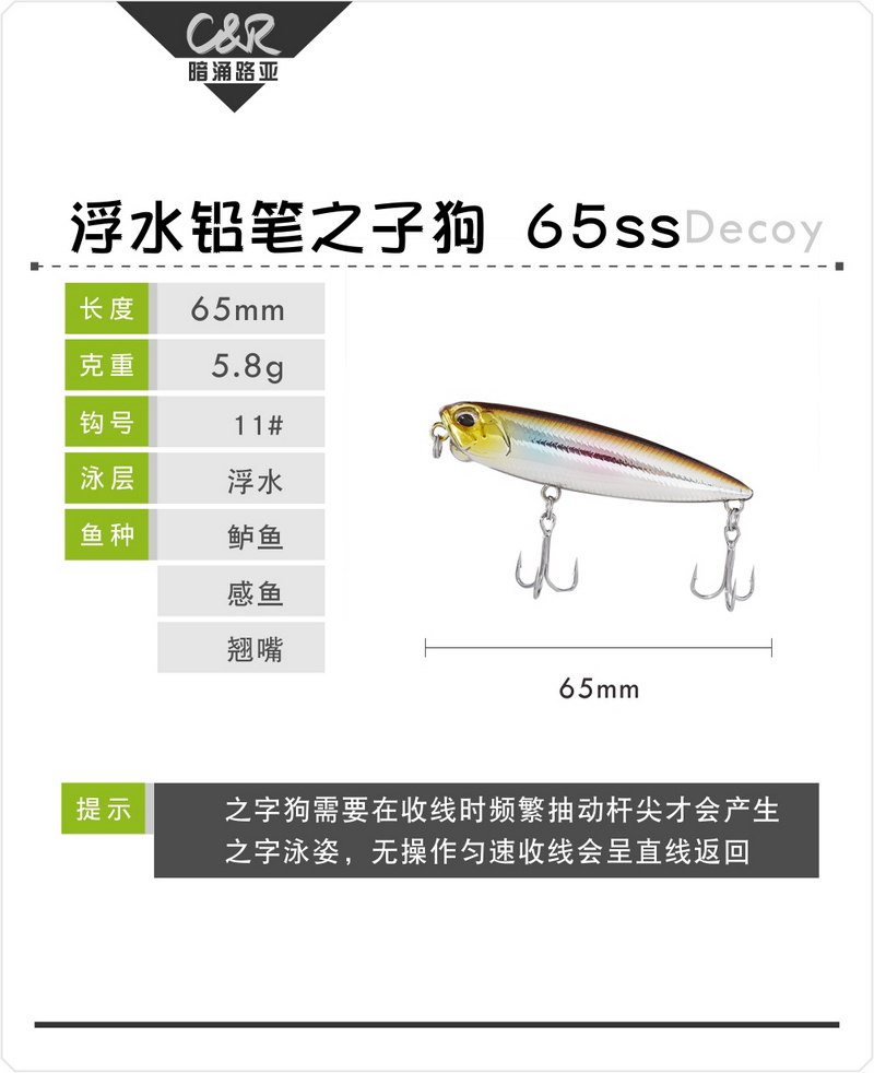 Dark Flock Road Sub 65mm5 8g WORD DOG FLOATING WATER PENCIL LUIA FAKE BAIT SURFACE TEAK BASS Bass Fish Sea Bass