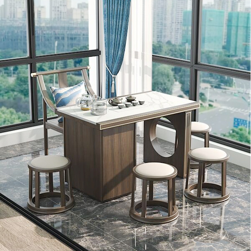 New Chinese tea table Zen tea table and chair combination Modern Chinese style simple office Full solid wood rock board Kung Fu tea table