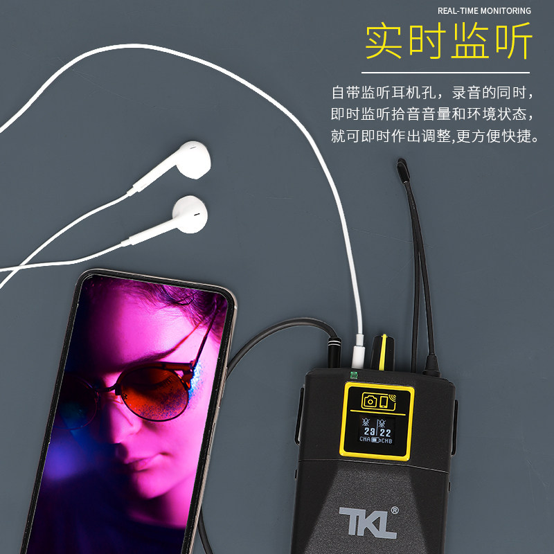 TKL wm8 pro small bee wireless microphone lavalier mobile phone computer single-eye camera live professional vlog recording equipment full set of clip-collar microphone one drag two interview radio