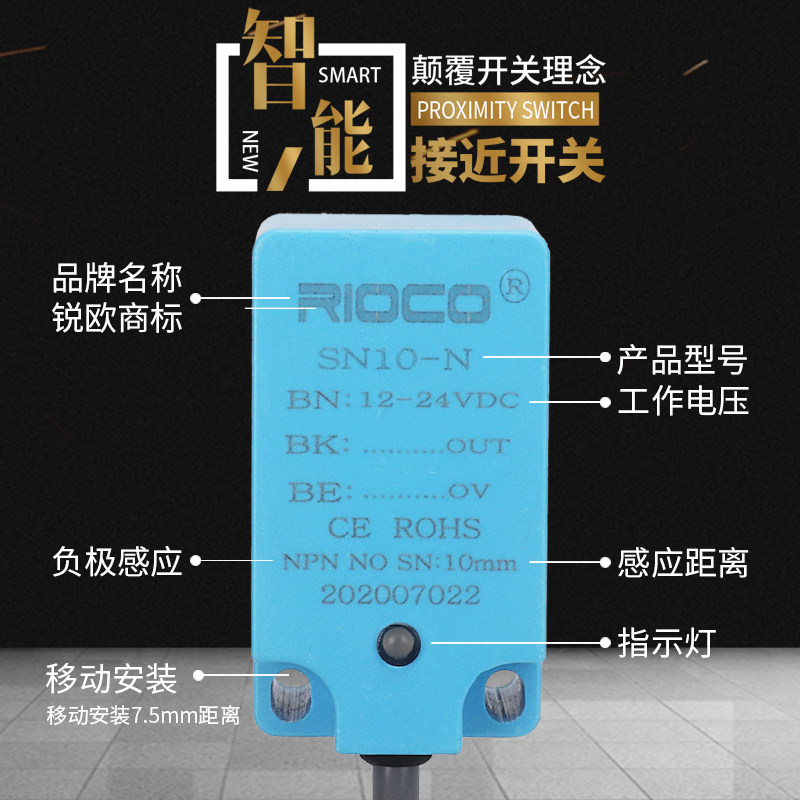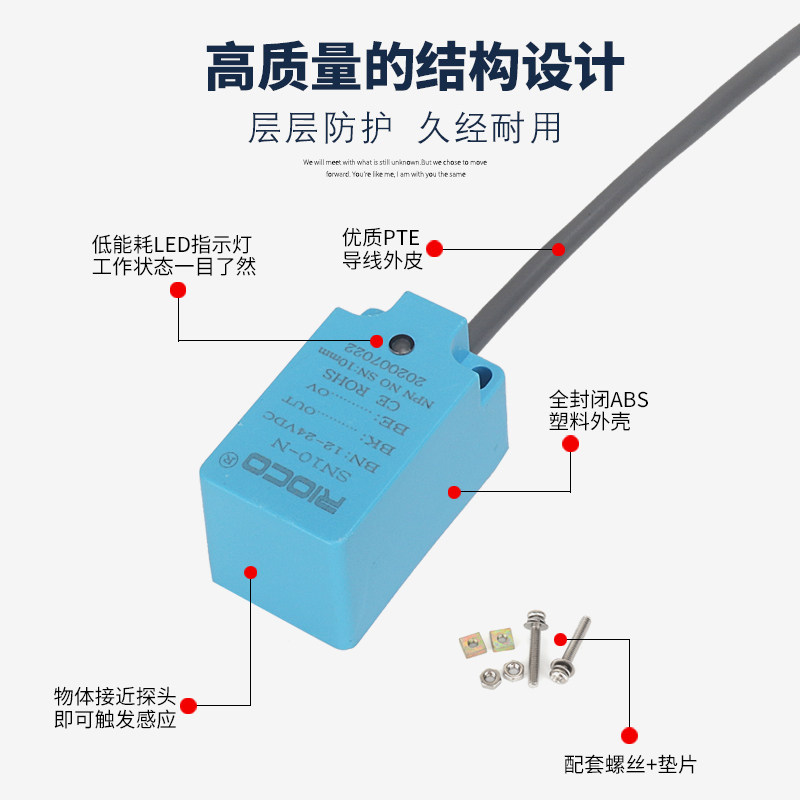 Original fit square proximity switch SN10-N third-tier NPN normally open 24V close to sensor PS-10N induction 10MM