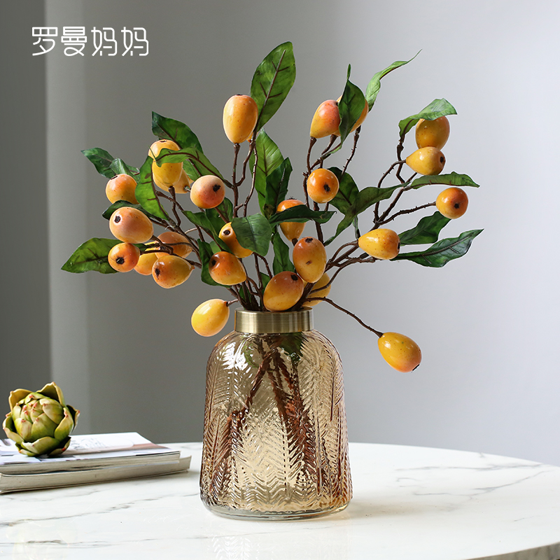 Bronze ring mouth green small number vase bronze ring mouth amber greet large number vase bronze ring mouth amber greeting large number vase 6 branches yellow lily bronze ring mouth amber greeting large number vase 4 branches Pipa fruit copper