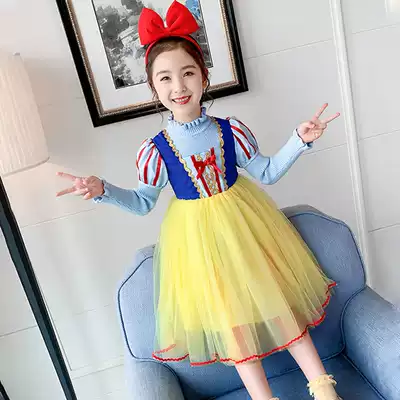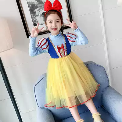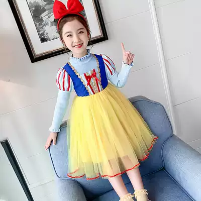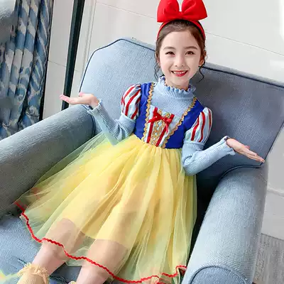 Girls snow white dress Autumn new dress Western style spring and autumn puffy yarn sweater children's mesh skirt female