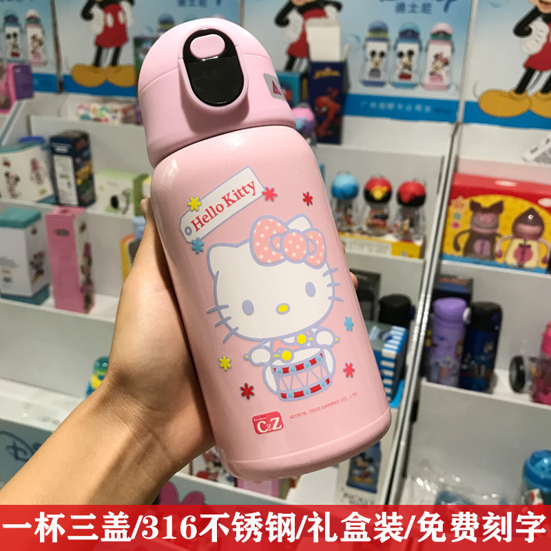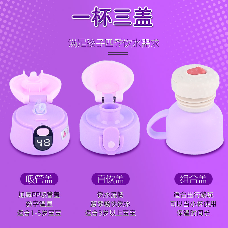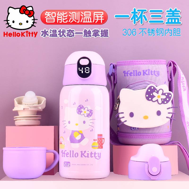 Hello women's baby straw cup kindergarten portable intelligent display warm upscale elementary school children's insulation cup lettering