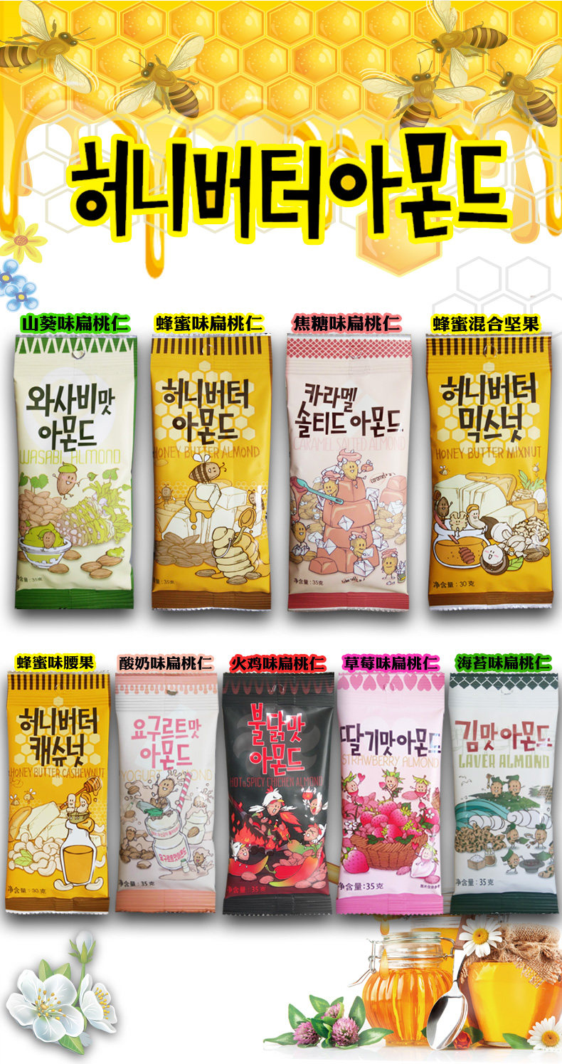 ten Pack Combinations Korea Imported Tom Farm Honey Cream Almond Flat Peach Rinbar Wood Without Shell Nuts 10