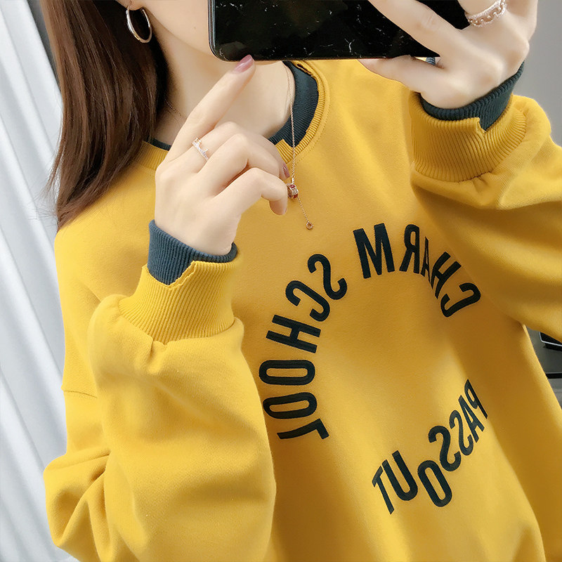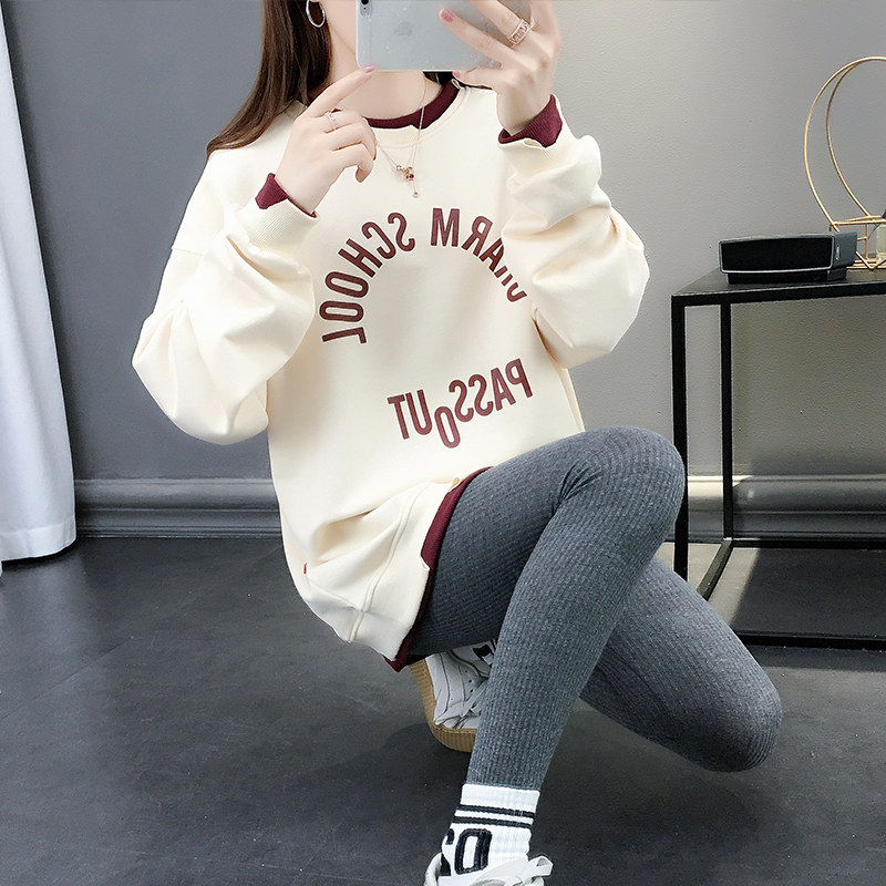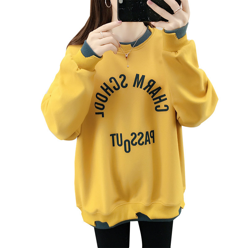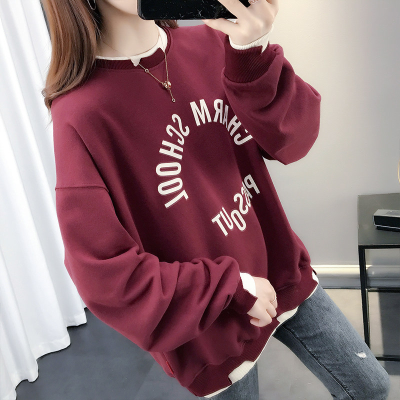 I Tchooiate new sweater women's 2023 new round neck loose Korean version autumn and winter fake two-piece splicing top