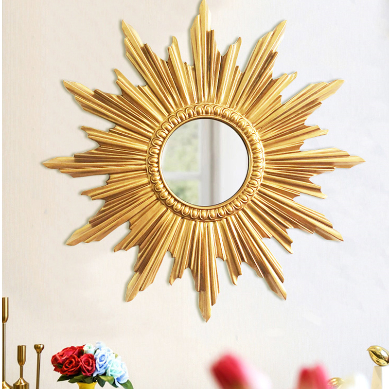 European-style creative mirror decoration mirror porch hanging mirror background wall sun flower wall hanging restaurant wall golden side mirror