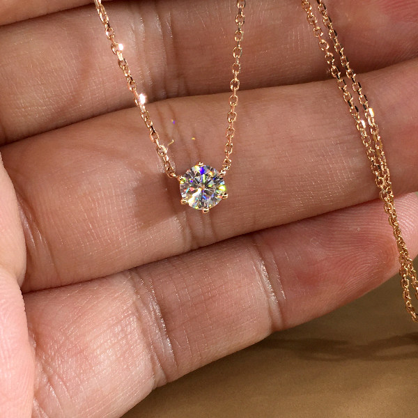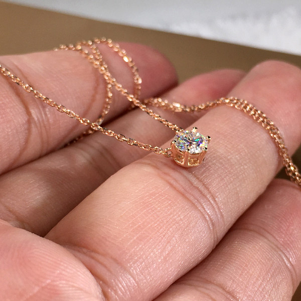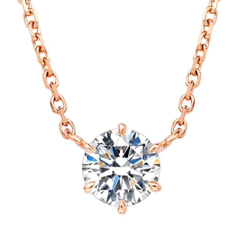 18K gold inlaid classic six-claw diamond necklace female simple six-claw single diamond collarbone necklace pendant female