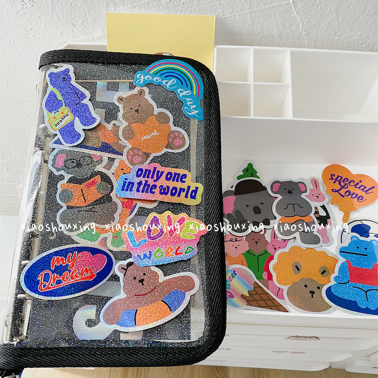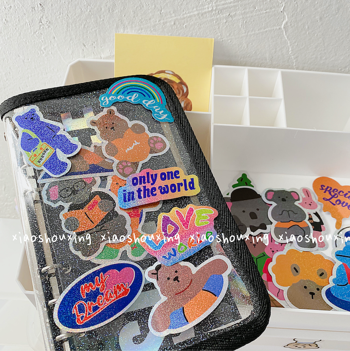 Korean Laser Small Bear No Marks to Tear Decoration Stickers Cute Laser Hand Ledger Day Mark