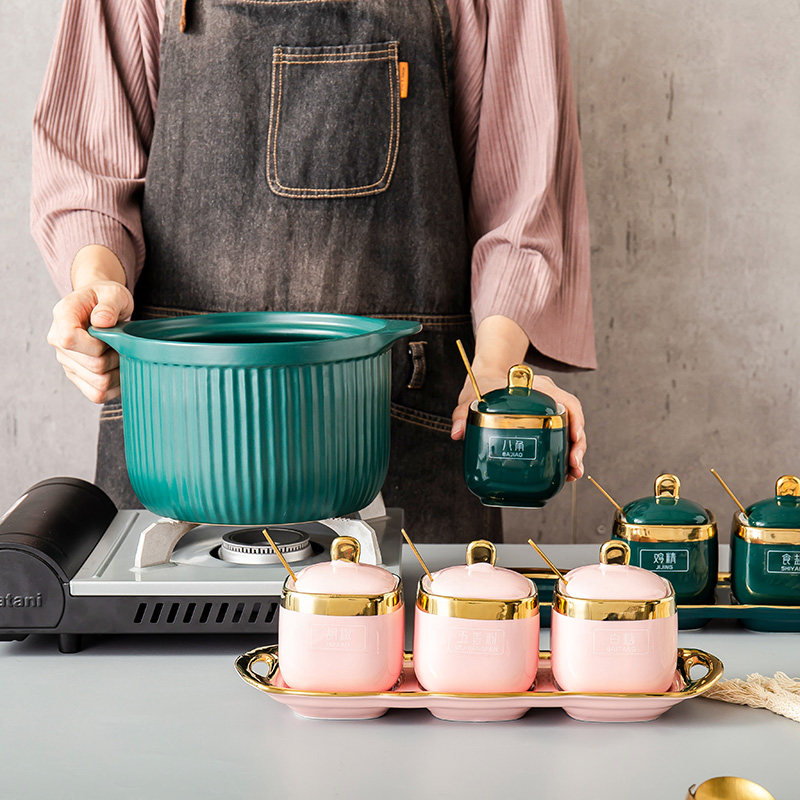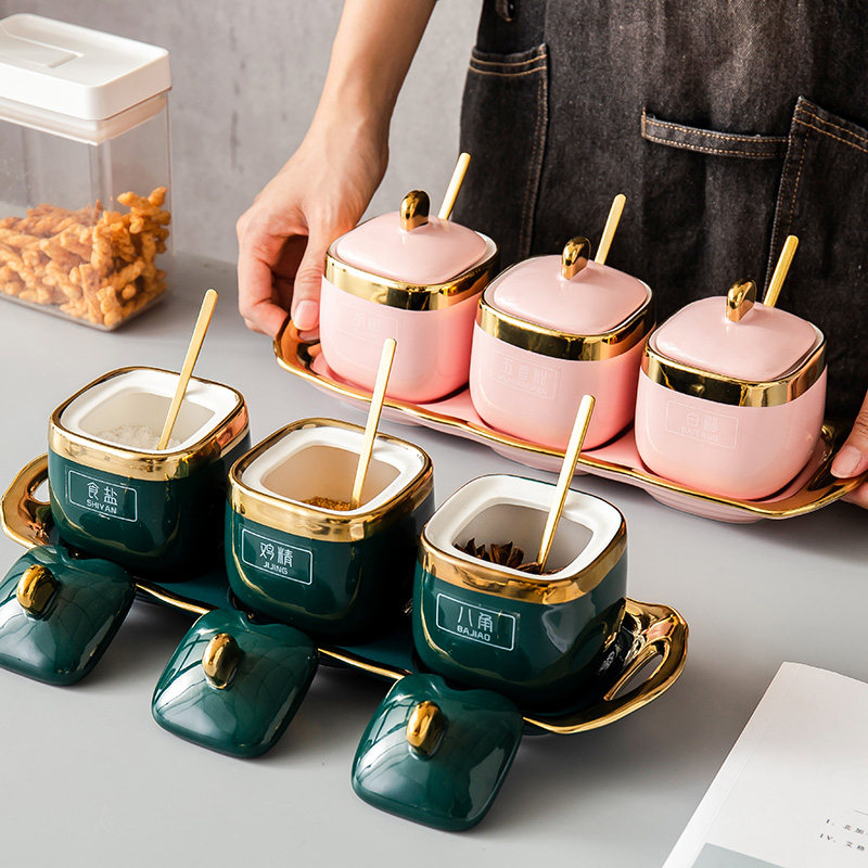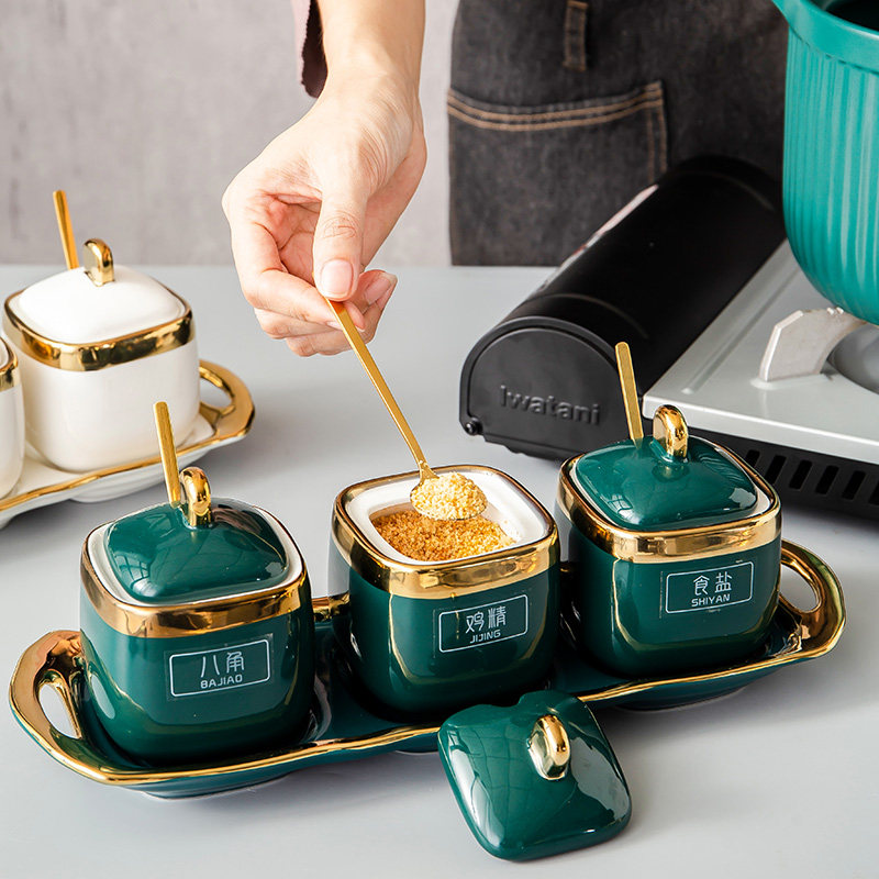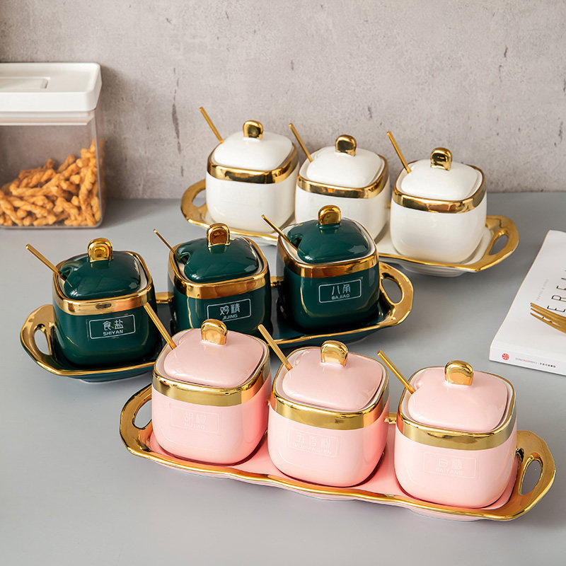 Nordic light luxury three-tone material tank seasoning bottle storage household fashion ceramic sugar tank Salt monosodium glutamate tank set