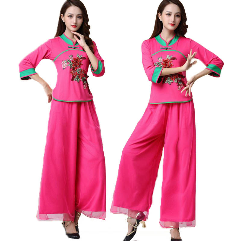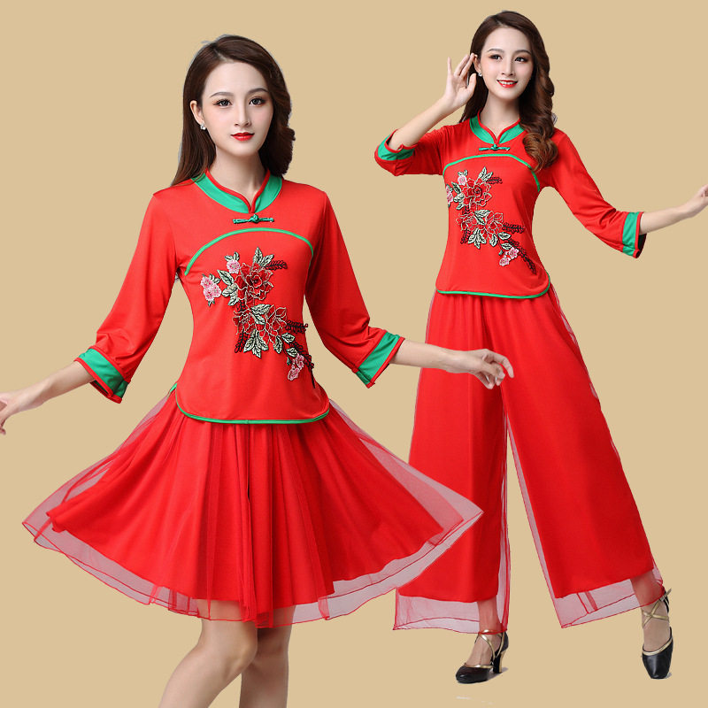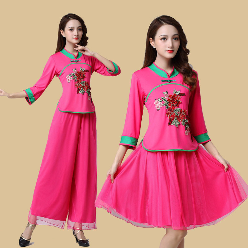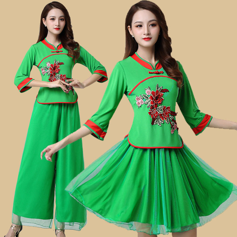 2020 new square dance costumes Spring and autumn suit female middle aged milk silk elastic large size to perform a dance suit