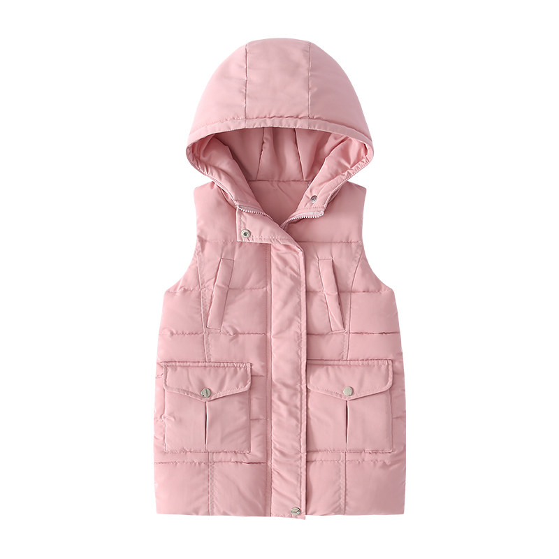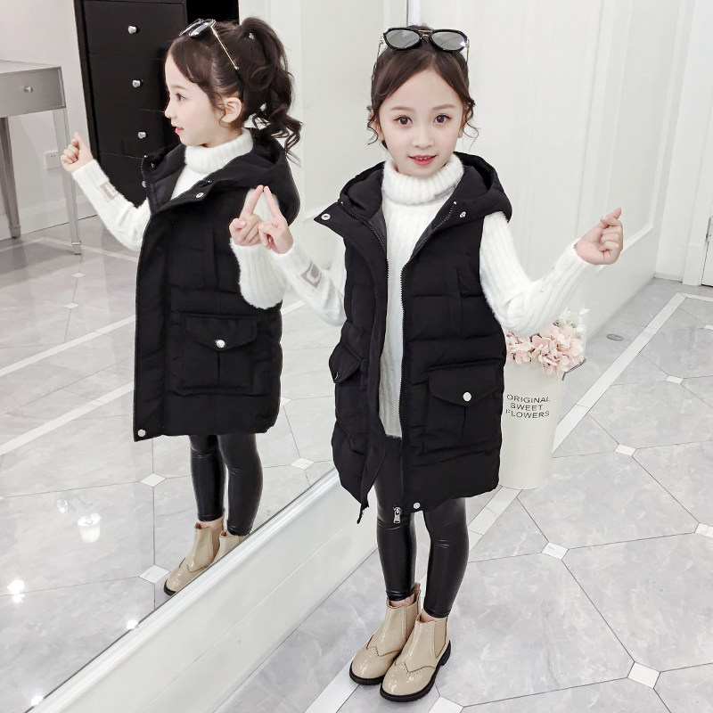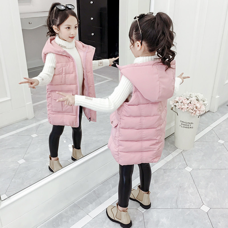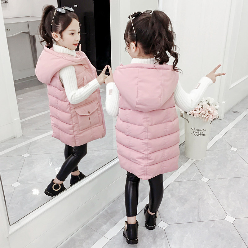 Girls down cotton vest Children's autumn and winter Foreign school wear hooded vest horse clip Middle and large children's medium and long version of the jacket
