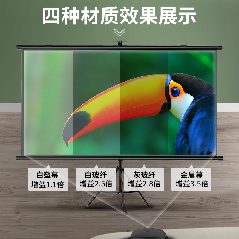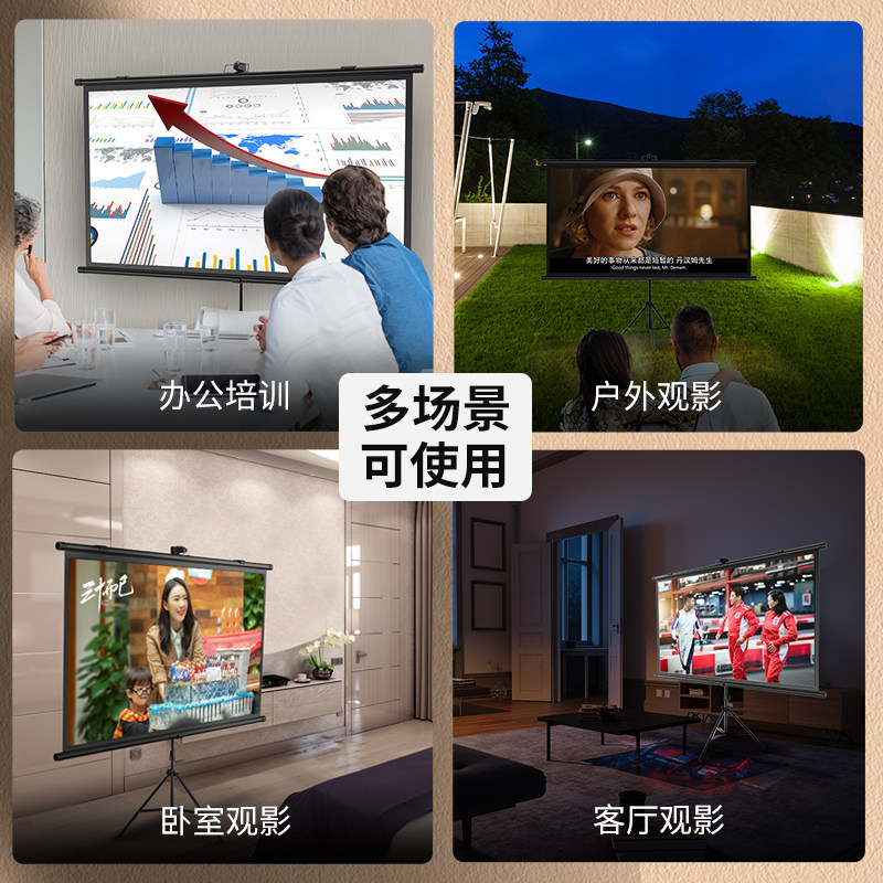 Bracket screen projection cloth floor mobile portable bracket Rod non-perforated can be wall-mounted 72 inch 84 inch 100 inch home HD bedroom projection screen outdoor projector projection screen office curtain