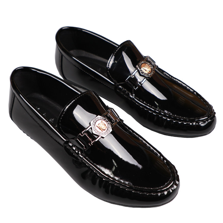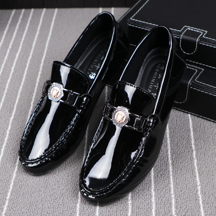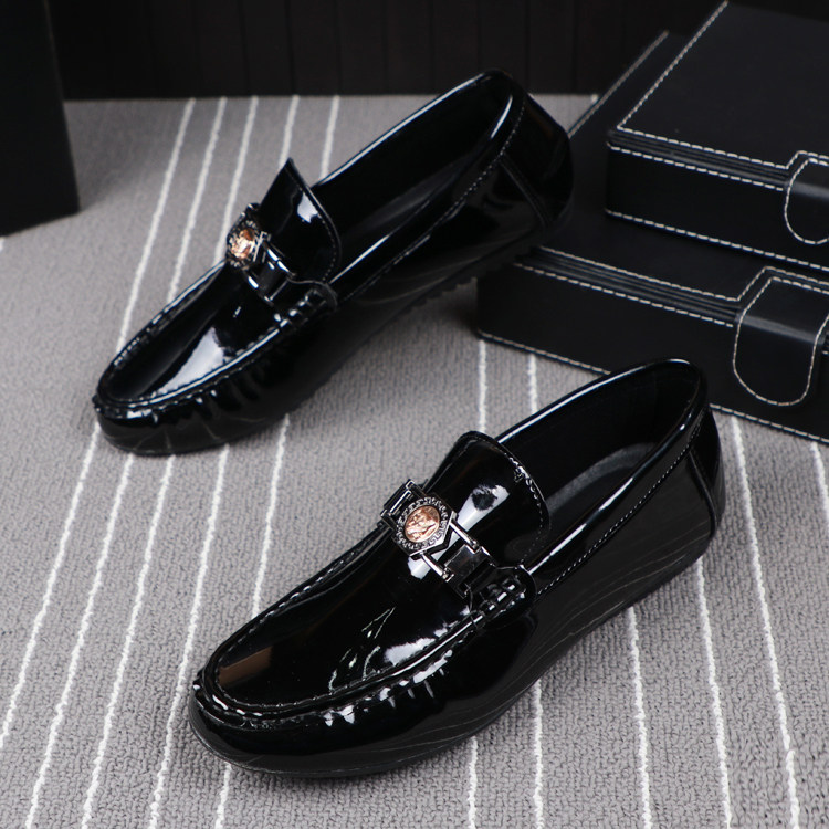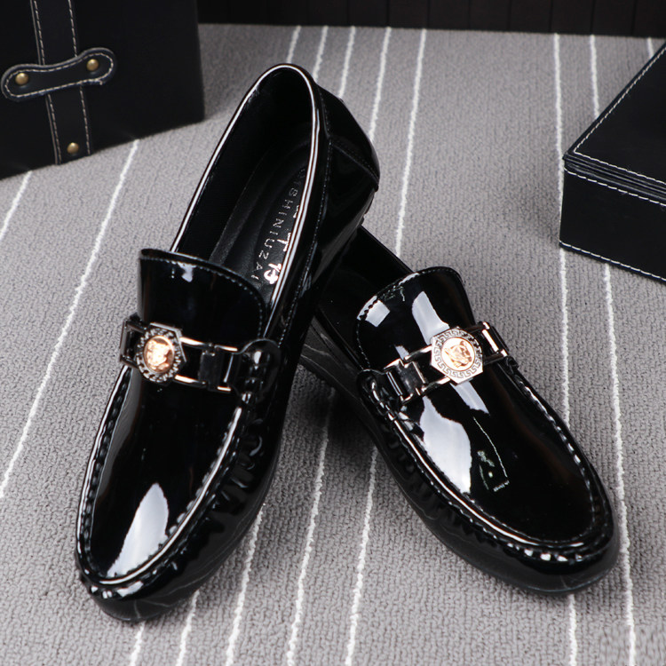 Black Lacquered Leather Bean Shoes Man Genuine Leather Summer Bright Leather Face Sloth Shoes One Foot Pedal Lefu Shoes Men Casual Leather Shoes