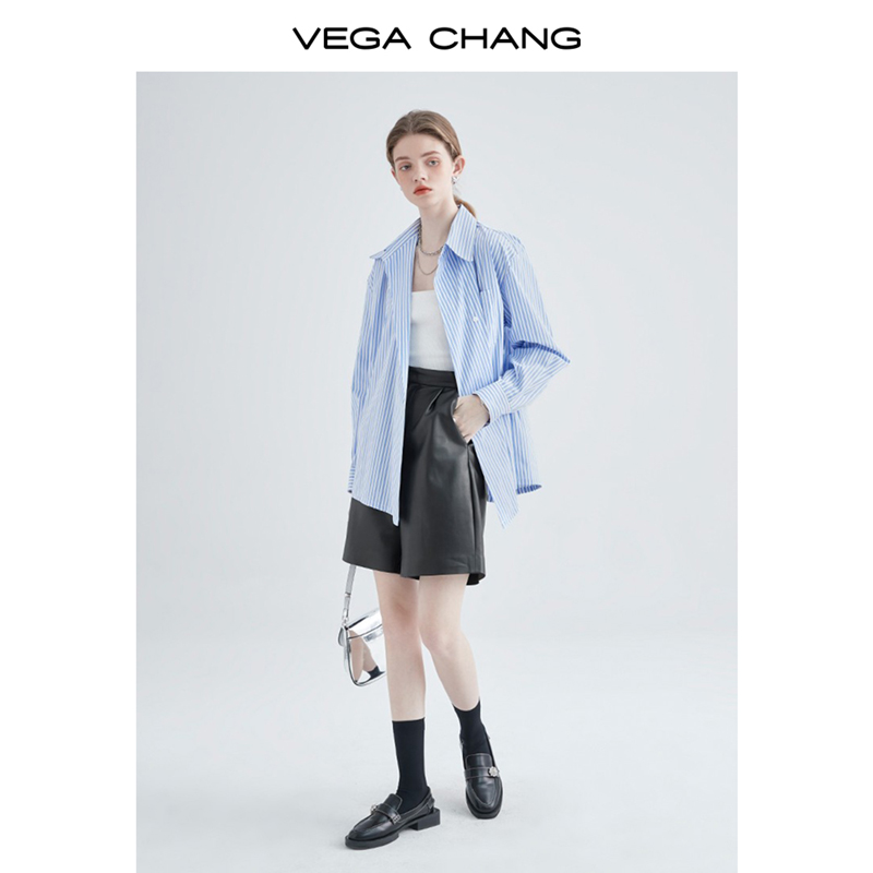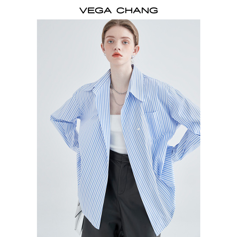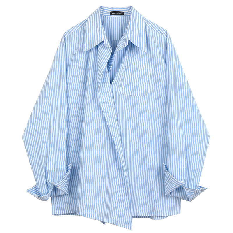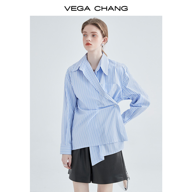 VEGA CHANG blue striped shirt women's design sense niche irregular loose top autumn 2022 new model