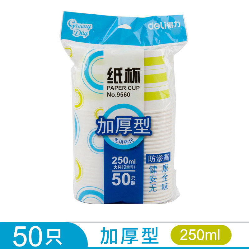 Deli 9560 paper cup 250ml thick paper cup office water cup 50 only disposable cups