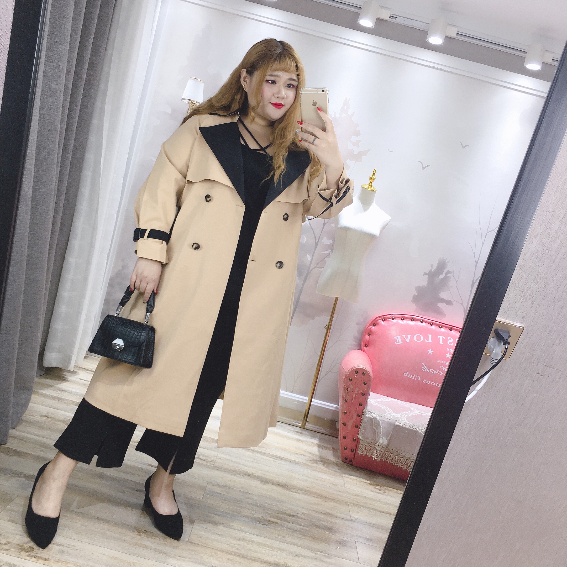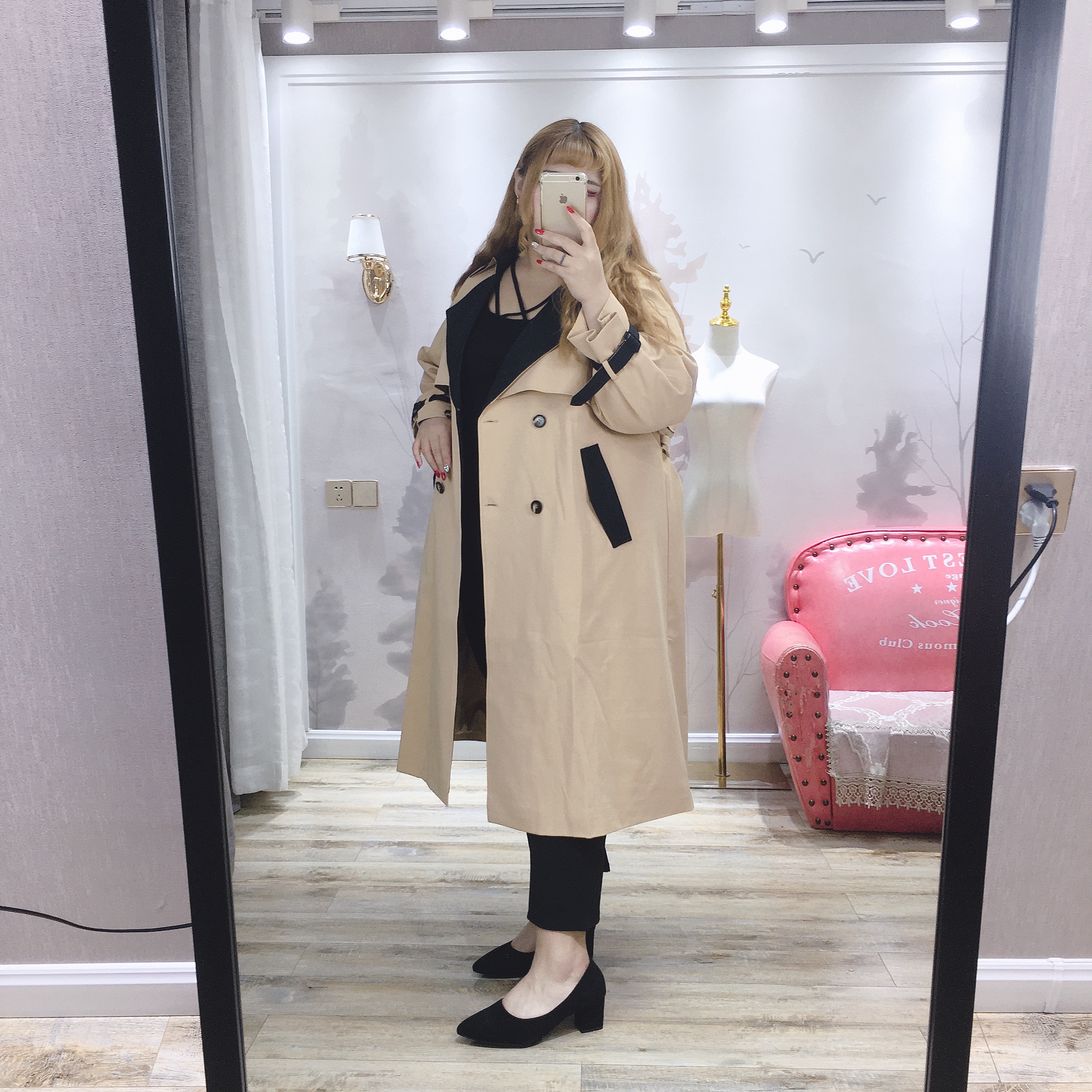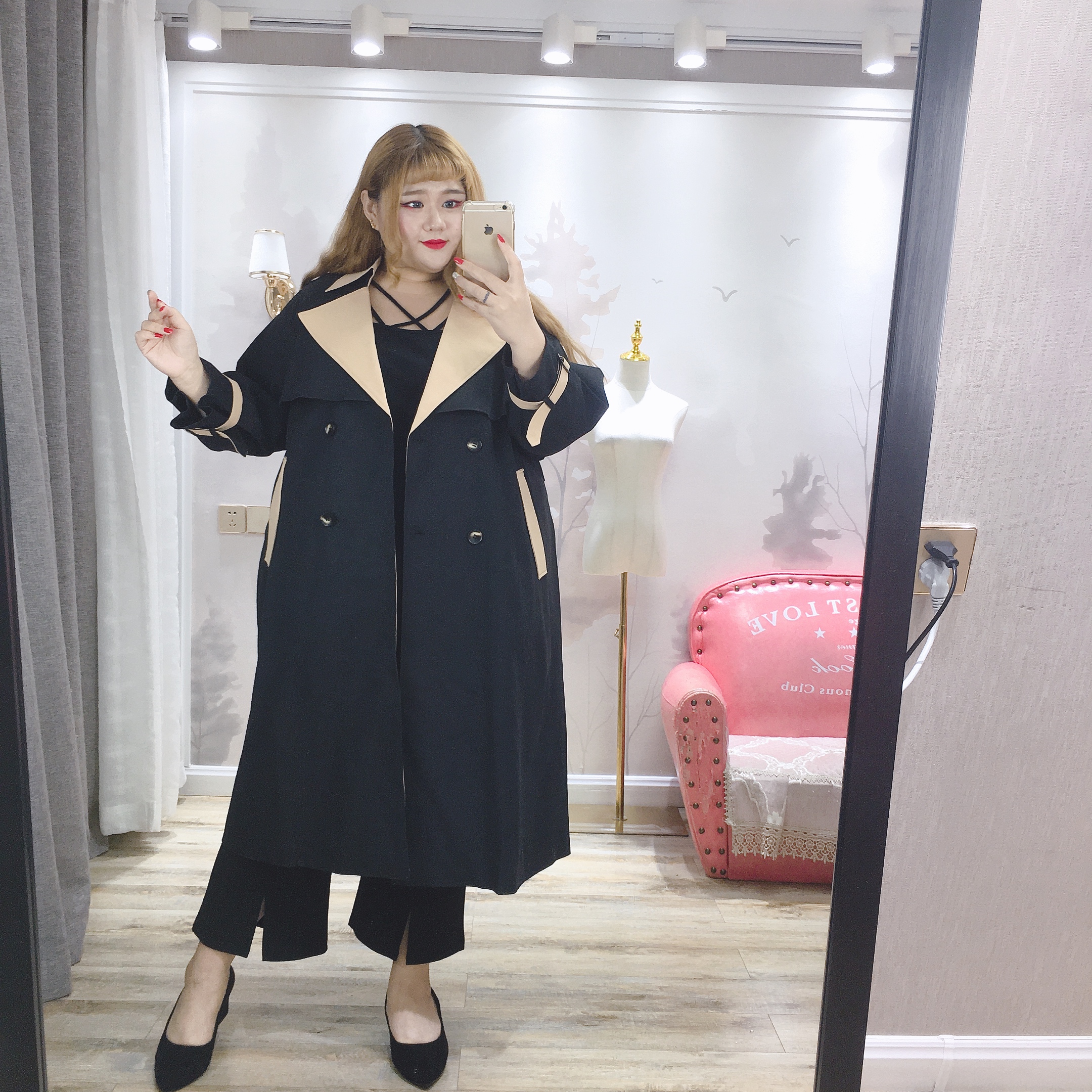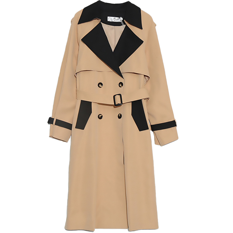 Fat fairy Yingying large size women's autumn style 200 jin fat MM Korean version simple contrast color slim long version waist windbreaker