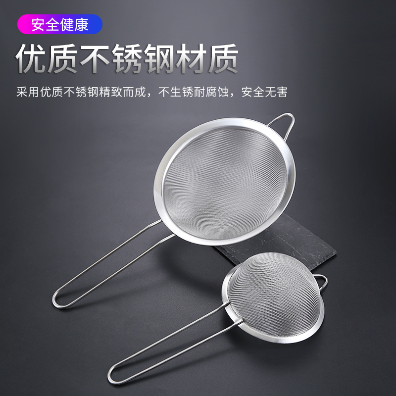 Thickened stainless steel filter net fried hot pot household large colander kitchen oil grid milk tea coffee shop hand-held sieve