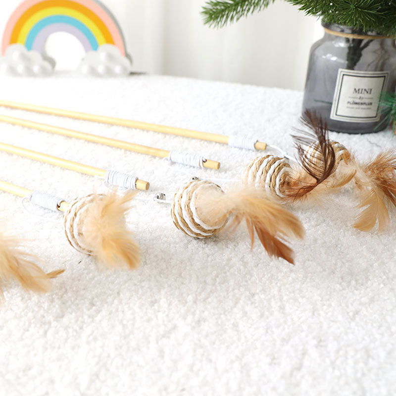 Cat Wooden Pole Feather Teasing Cat With Cat kitty Interactive self-Hi vocal bell Bell Colored resistant Ball Cat Toy