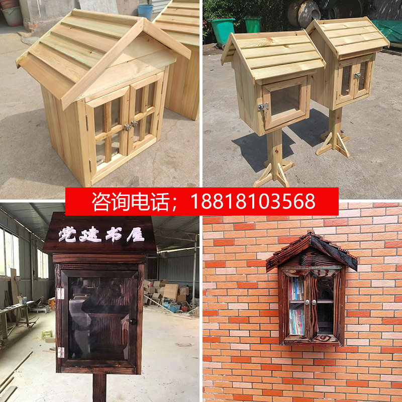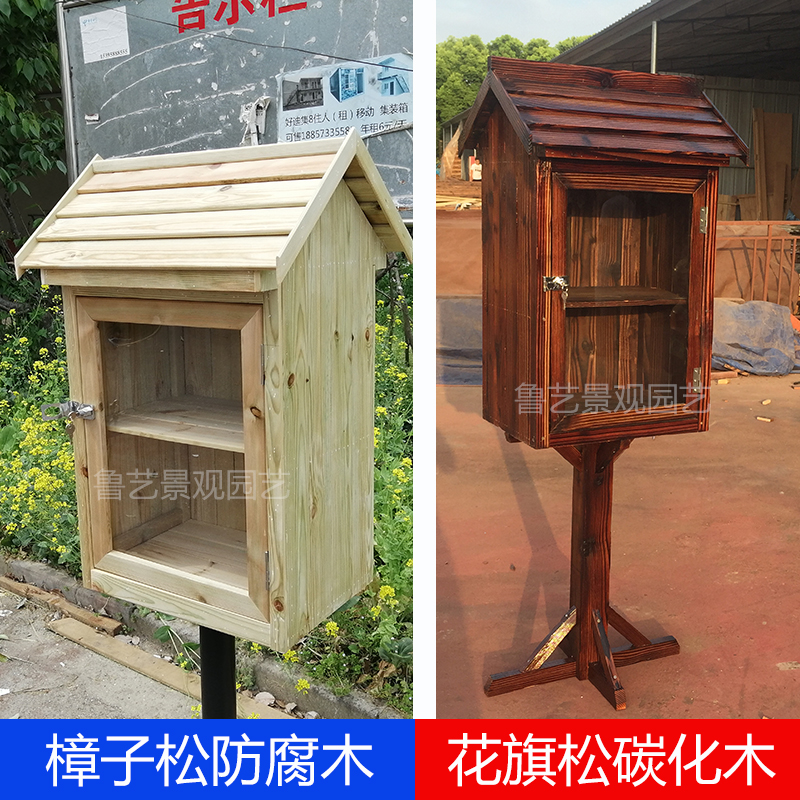 Outdoor anti-corrosion wood shared book house rainproof bookcase Mini cabin Kindergarten book house Community public wooden bookshelf
