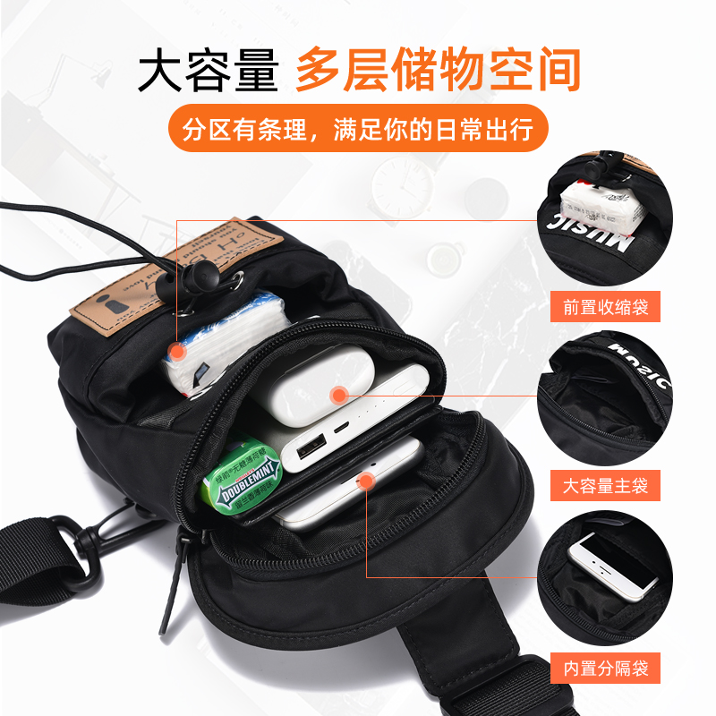 Men's skew satchel Ins superfire chest bag Chauded day series Single shoulder bag Girl Light Casual Bag cable-covered Inclined Cross-to-Shoulder Bag