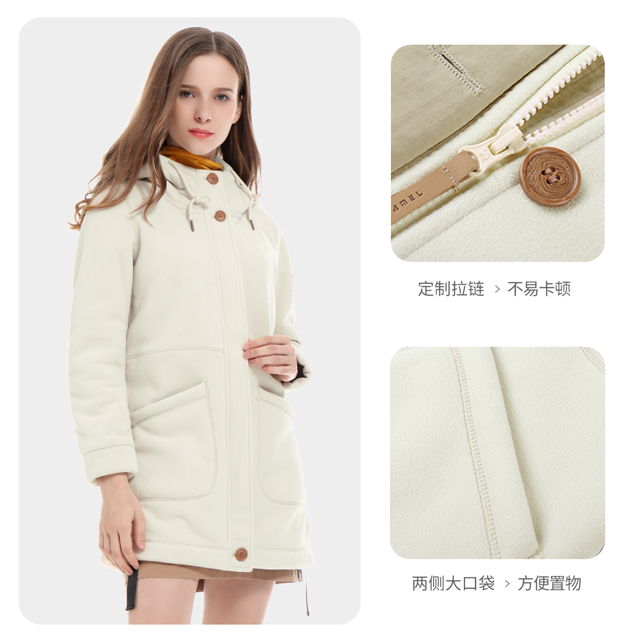 Camel outdoor fleece jacket women's mid-length 2021 winter new warm hooded cardigan fleece jacket top
