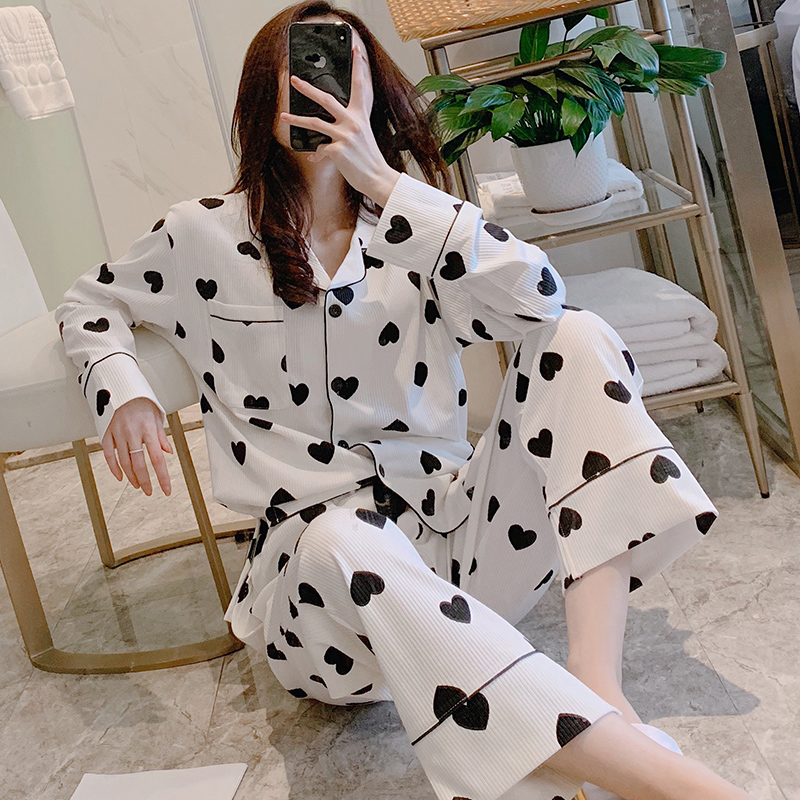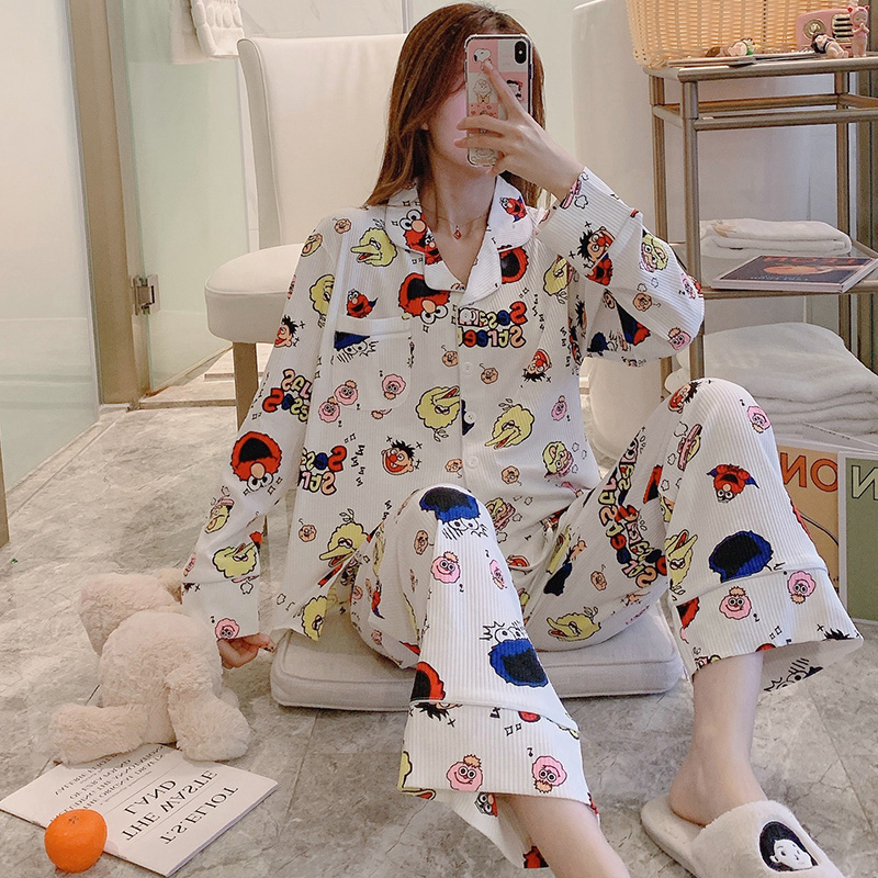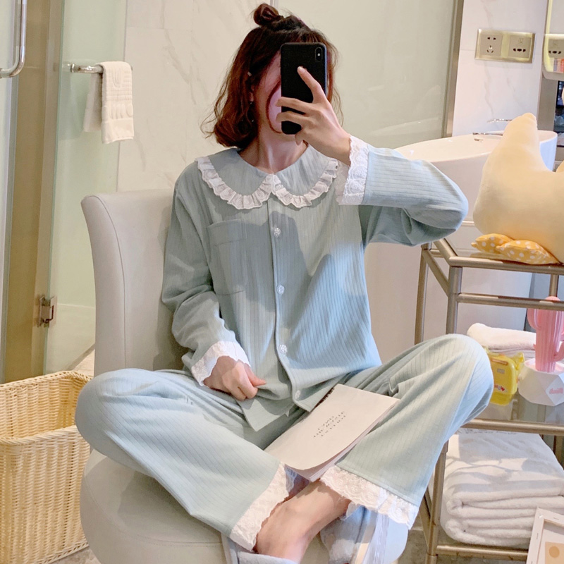 Sleepwear Woman Summer Slim pure cotton long sleeves Full cotton Spring and autumn ladies Loose Furniture Turncoat White Two-piece Suit