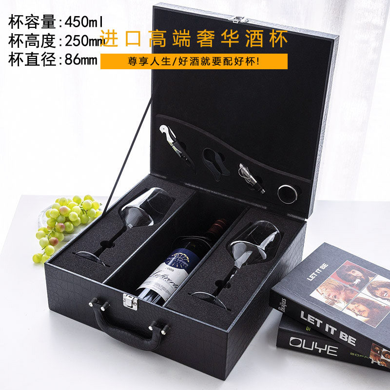 German high-end red wine glass set 2 pieces leather box crystal glass wine glass goblet gift box portable