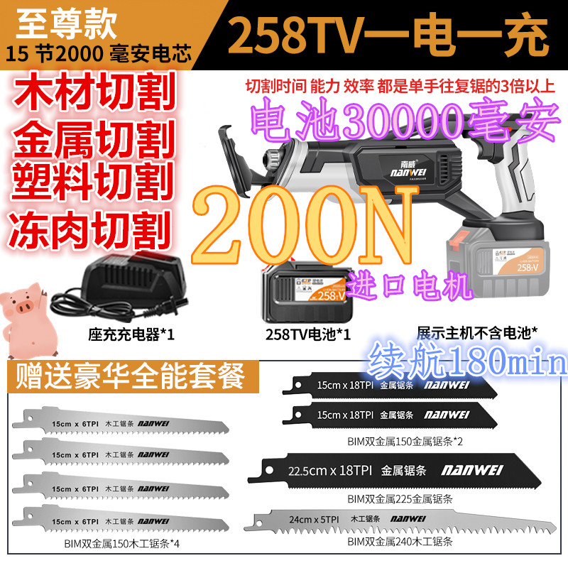 18V saber saw one electricity, one plastic box, four saw blades, 18V saber saw two electricity, one plastic box, four saws, 36VF saber saw one electricity, one plastic box saw blade, 36VF saber saw two electricity, one charge