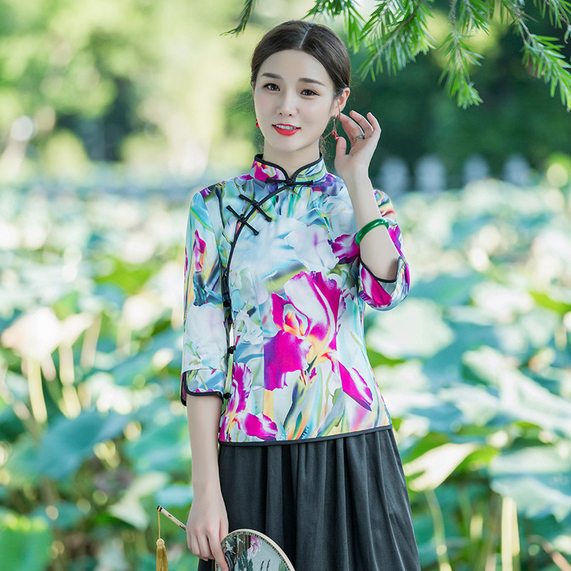 Huals Classic Qipao Blouse Blouses Fall 2021 New Chinese Retro Everyday Display Slim Elegant White Real Silk Don