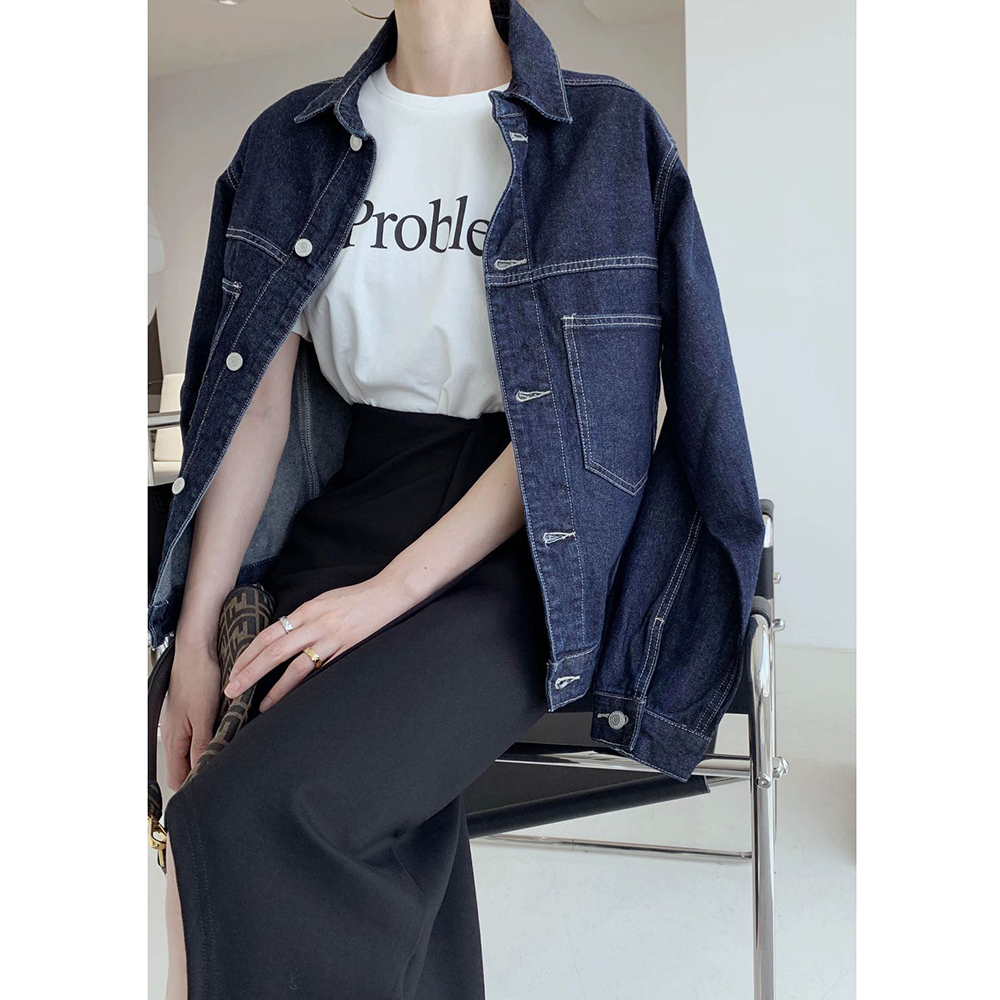 Fall New Retro Classic Tannin Pure Cotton Ram Color Line Denim Woman 100 Hitch Temperament Short Coat Spring Autumn Jacket