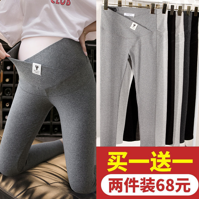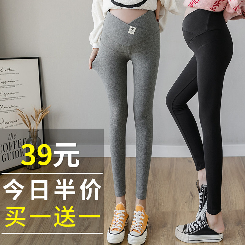 Maternity autumn pants cotton autumn winter plus velvet thickened inside wear spring and autumn leggings pajama pants pregnant late line pants spring wear