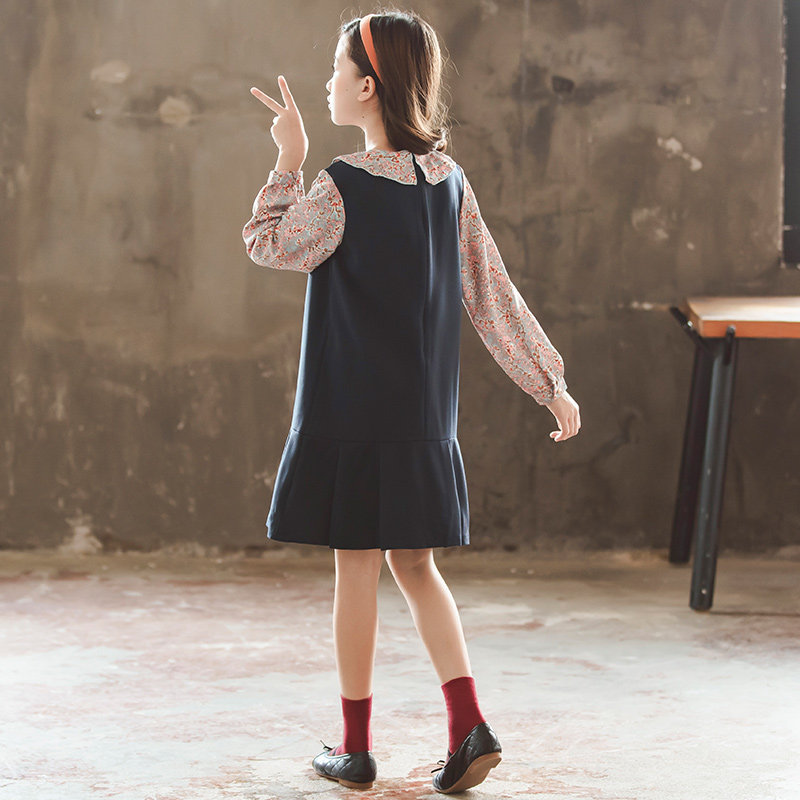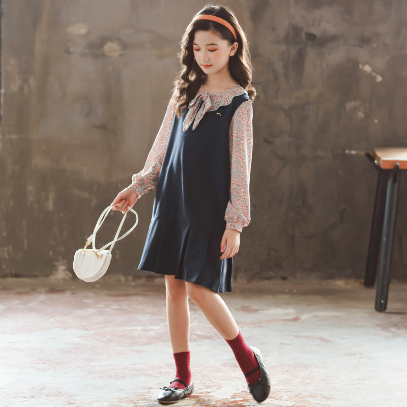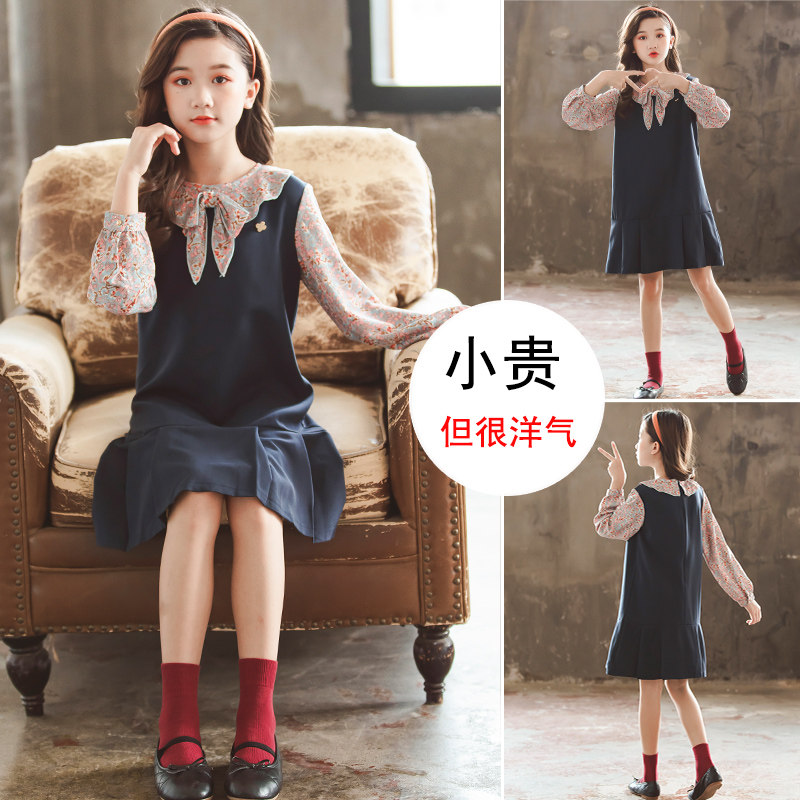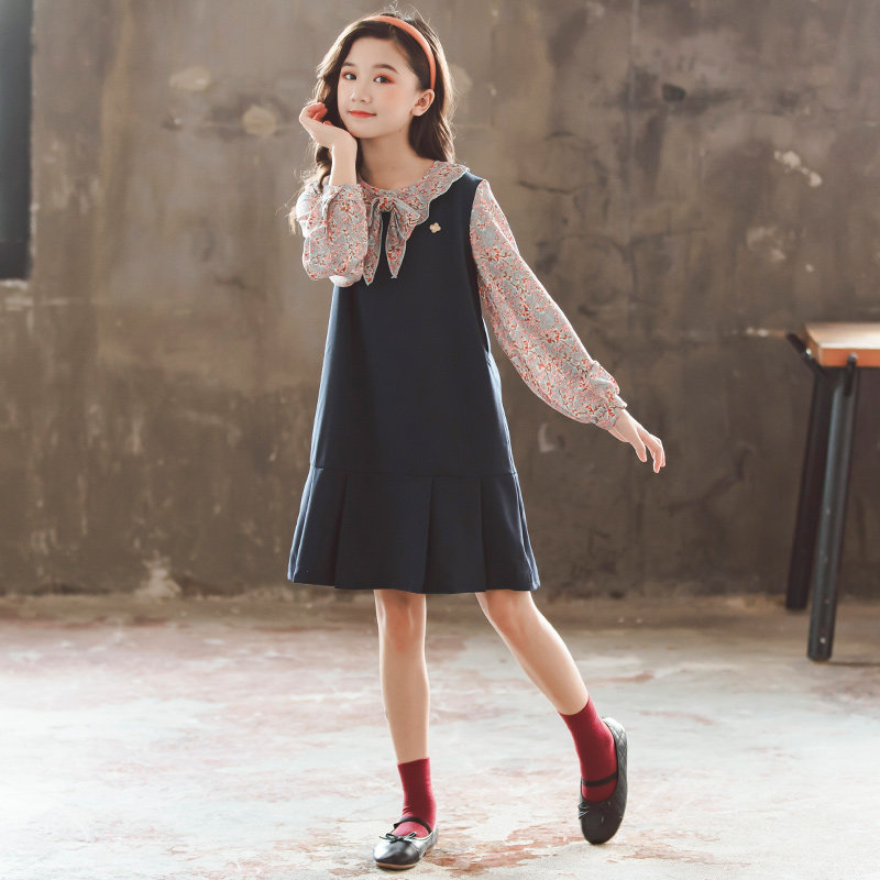 Girls' dresses spring and autumn 2022 new girls' preppy skirts and autumn dresses in the big children's chiffon princess skirts