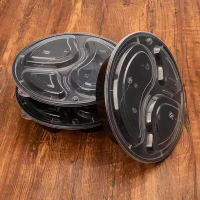 Hongfeng three-grid round disposable fast food box Black delivery box split box lunch fruit lunch bag Mail