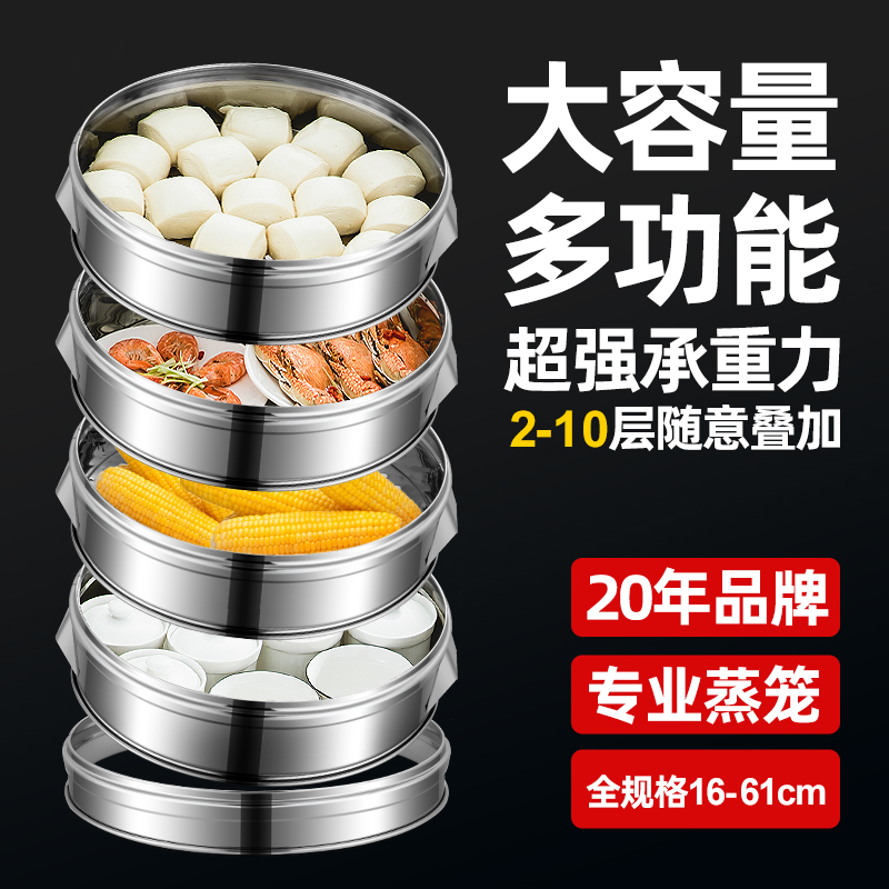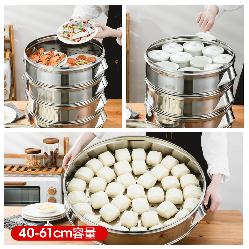 Steamer stainless steel steamer cage drawer household large capacity steamed fish artifact large 50cm commercial steamed bun steamed steamed bun