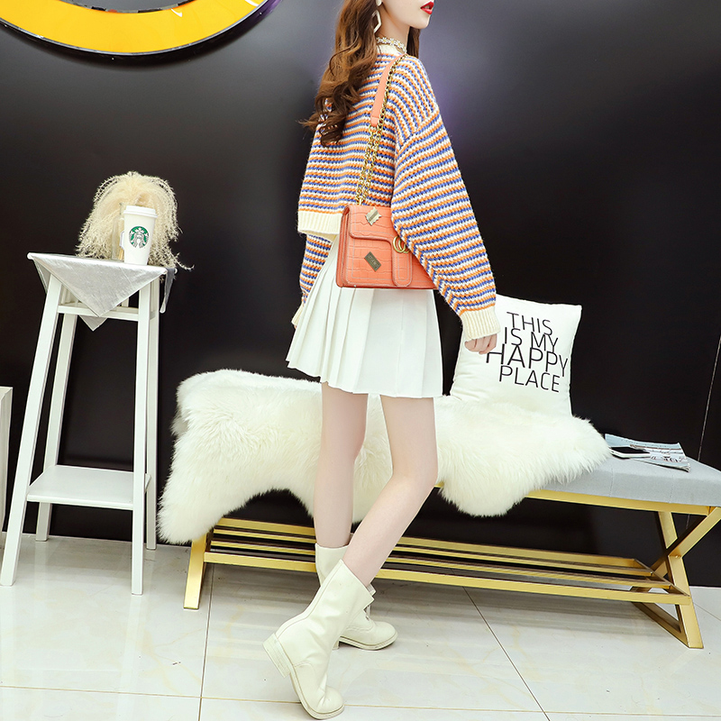 Very fairy's day department short sleeve headcoat female loose outside wearing small sub-early fall high waist striped knit blouse