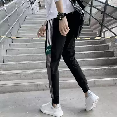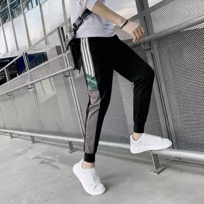 Striped stitching casual pants men plus velvet thickened Korean trend handsome wild 2021 Autumn New slim feet