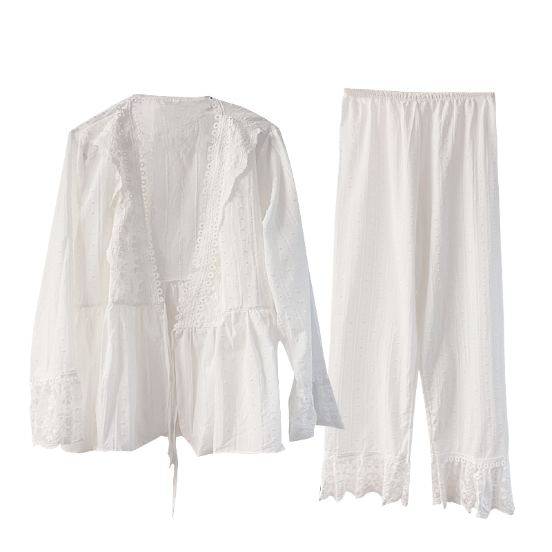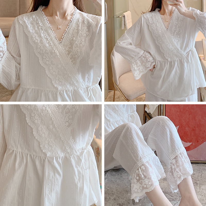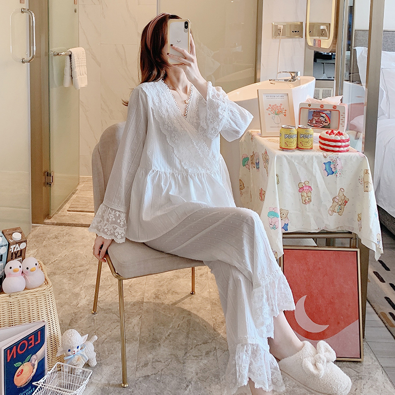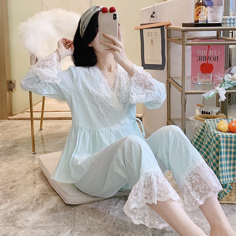 Fairy cotton pajamas women's long-sleeved spring and autumn kimono palace retro Hanfu cardigan loose summer home service suit