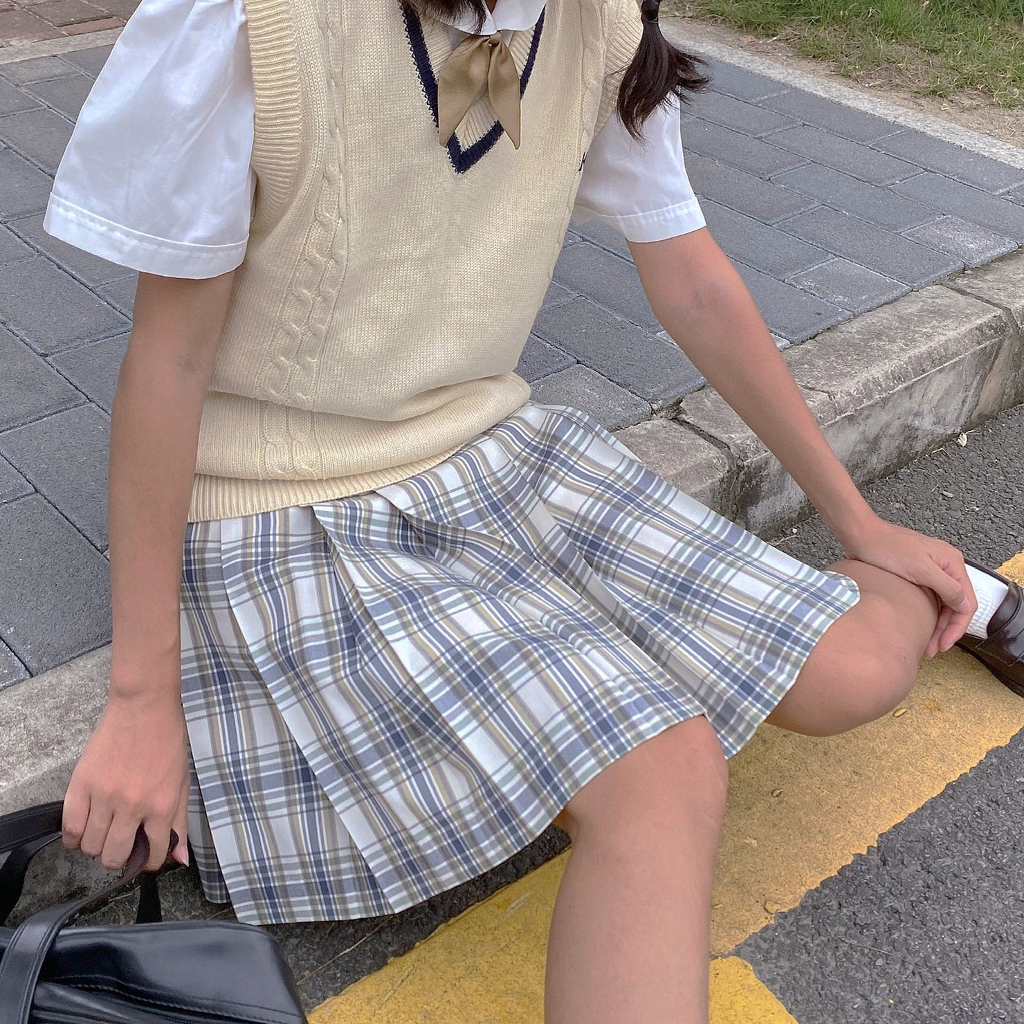 (Terrier bean EKOA) Spring fresh * Ying Tea * Imported Japanese plain fabric JK uniform front box pleated plaid skirt