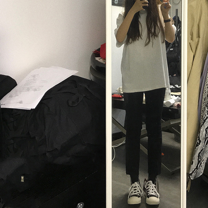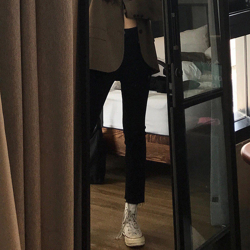 Large size jeans woman 2022 new high waist straight cylinder Korean version 90% pants fat younger sister elastic black pants slim