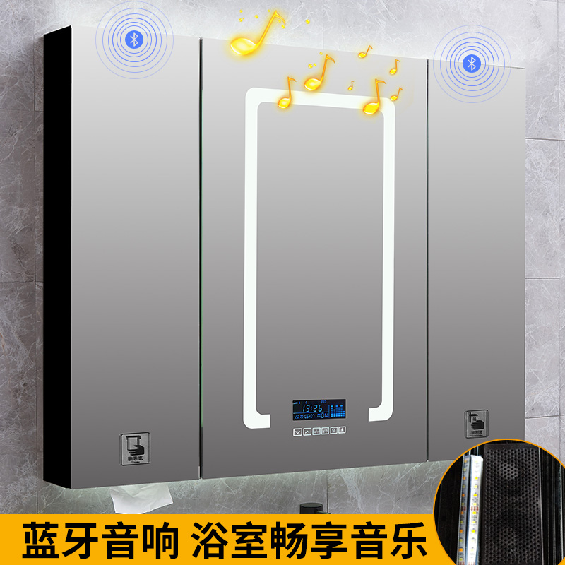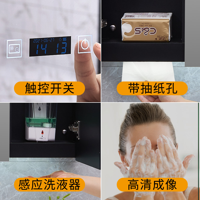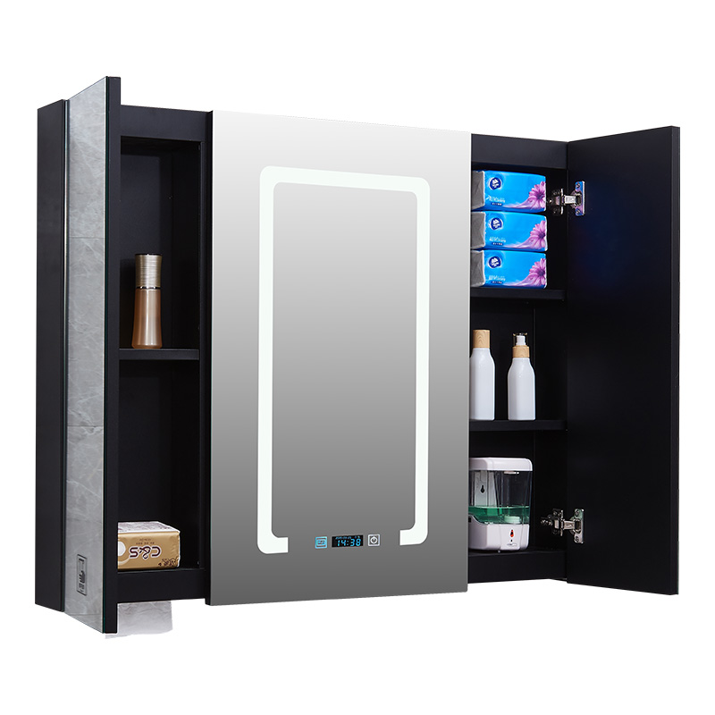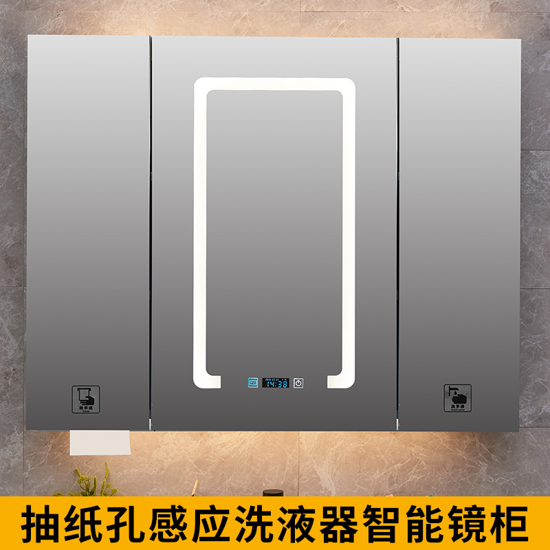 Smart mirror cabinet hanging wall type stainless steel black bathroom with lamp mirror case dressing room handwashing liquid extraction toilet paper mirror cabinet