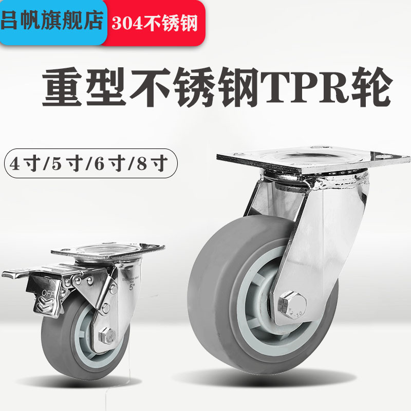 Heavy stainless steel TPR rubber wheels 4 inch 5 inch 6 inches 8 inches
