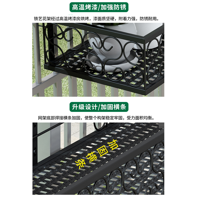 Balcony Flower Racks Suspended Iron Art Guardrails Flower Racks Multi Meat Railing Flower Racks Indoor Window Terrace Shelving