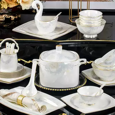 ANGELSGER dish set Household Chinese Jingdezhen bowls and dishes Phnom Penh high-end bone China wedding tableware
